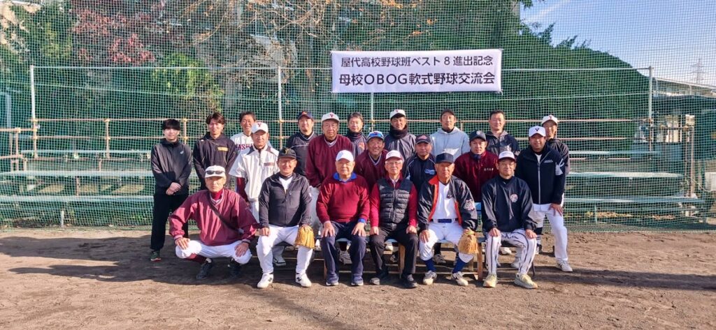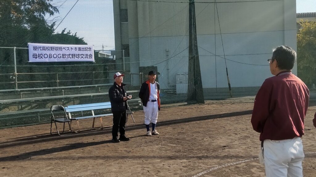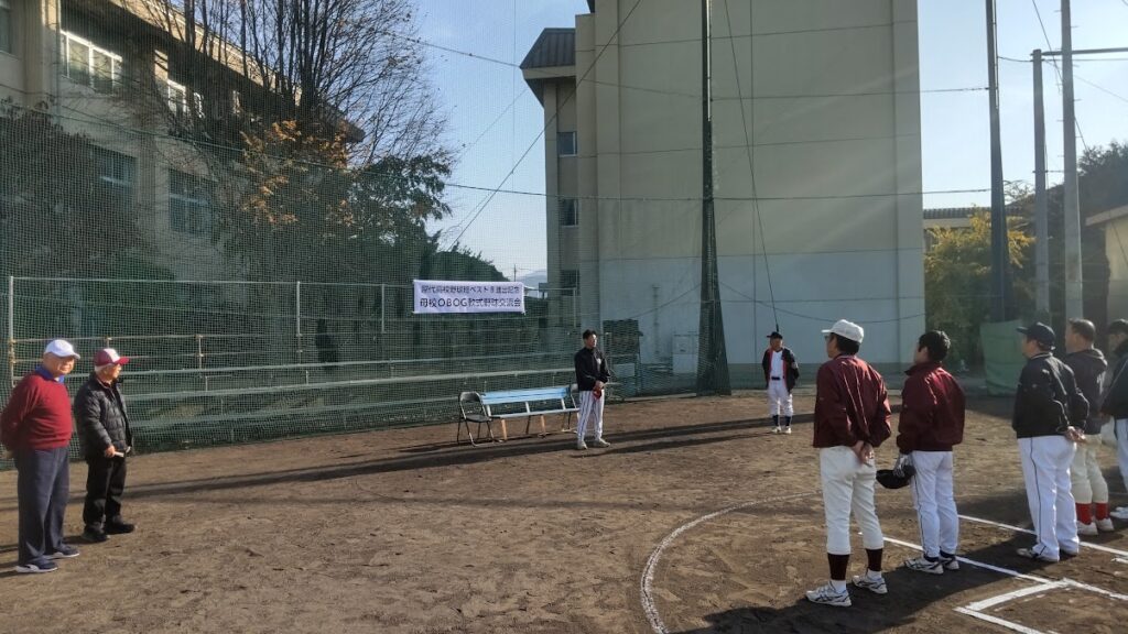 2025年11月9日 / 最終更新日時 : 2025年11月9日 tscrew お知らせ 【OB・OG会】OB・OG軟式野球交流会を開催しました 11月8日(土)に昨年に引き続き、「OB・OG軟式野球交流会」を母校グランドにて開催しました。 試合前にゲストとしてご来場頂いた石山健一様がピッチャー、OB春原様がバッター、副会長和田様がキャッチャー、会長村山様のコールで始球式が行われました。 2チームに分かれ、7イニングの接戦が行われ、年代の異なるOBが汗と涙を流したグランドで楽しい野球となりました。次年度以降も開催の予定です。 FacebookXBlueskyCopy